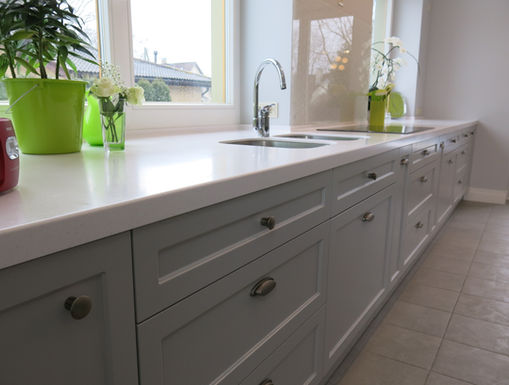 Kitchen surface: 30 mm quartz with an extremely high abrasion and moisture resistance.